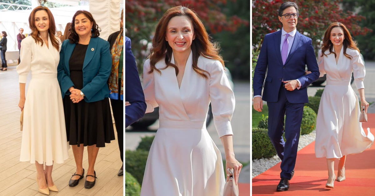 Елизабета изгледаше прекрасно во префинета бела креација, која ја надополни со елегантни бежови салонки и чантичка.