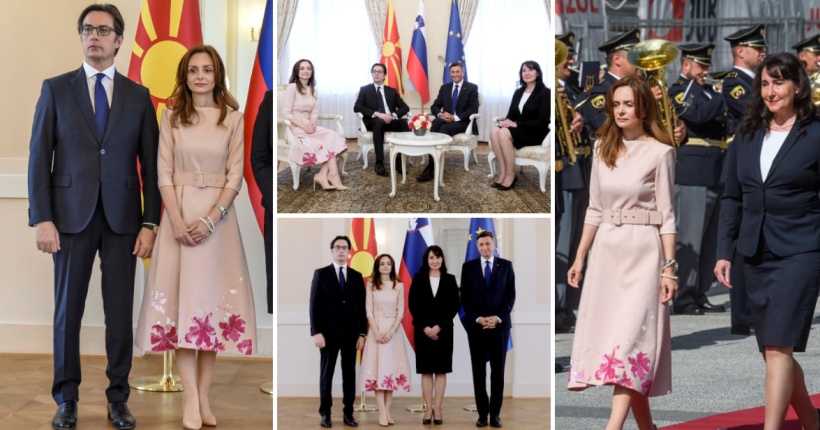 Првата дама Елизабета Ѓоргиевска префинета во розова креација за официјалната посета на Словенија