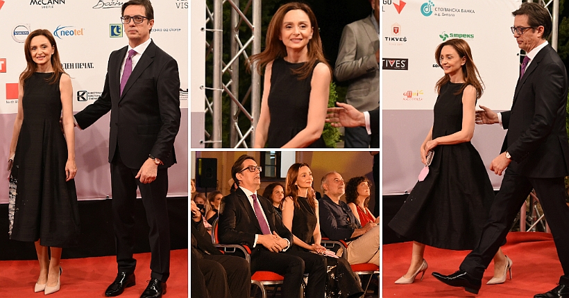 Првата дама Елизабета Ѓоргиевска шармира со едноставна елеганција покрај Стево Пендаровски на „Браќа Манаки“