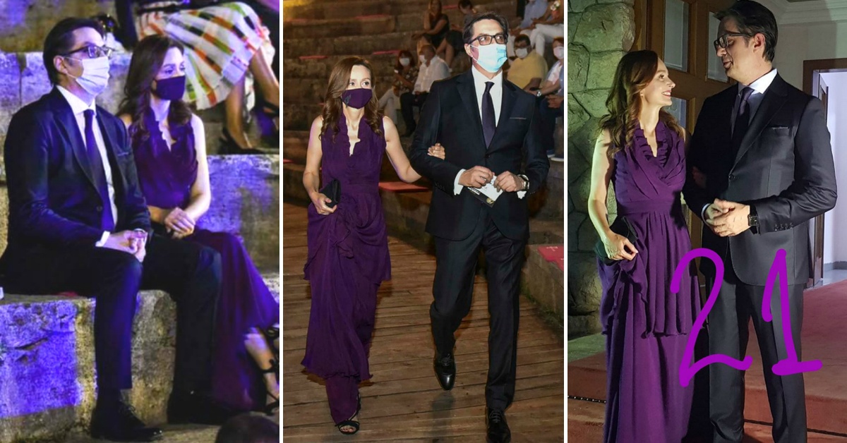 Елизабета Ѓоргиевска заблеска покрај претседателот Стево Пендаровски на отворањето на јубилејното 60-то издание на „Охридско лето“.
