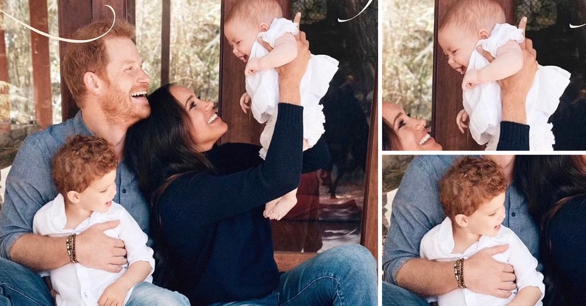 На слатката фотографија, 2-годишниот Арчи седи во скутот на Хари, додека насмеаната Меган ја држи во рацете 6-месечната ќеркичка.