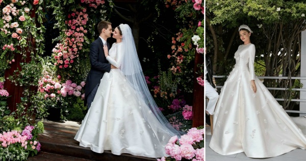Шармантната невеста блесна во венчаница од високата мода на Диор, дизајнирана од Марија Грација Кјури.