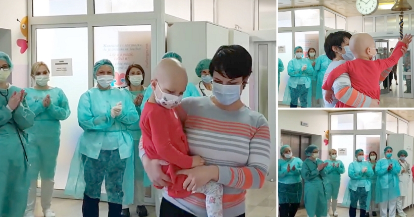 Борбената хероина го заврши лекувањето на Детската клиника во Скопје со победничко ѕвонење на ѕвончето додека медицинските лица силно ѝ аплаудираа.