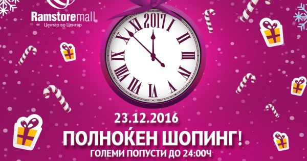 Во петок (23ти декември) купувајте од вашите омилени брендови по многу ниски цени и тоа до полноќ (00:00 часот). Неверојатен новогодишен шопинг, надополнет со музички бендови, најголема латино забава со извонредни танчери со почеток во 20:00 часот и многу подароци кои ќе се доделуваат од 22:00 до 00:00 часот за сите посетители кои ќе направат сметка над 2000 денари. Попустите и забавата продолжуваат и викендот, 24 и 25ти декември кои ќе ја направат атмосферата магична, еуфорична и привлечна за сите посетители.