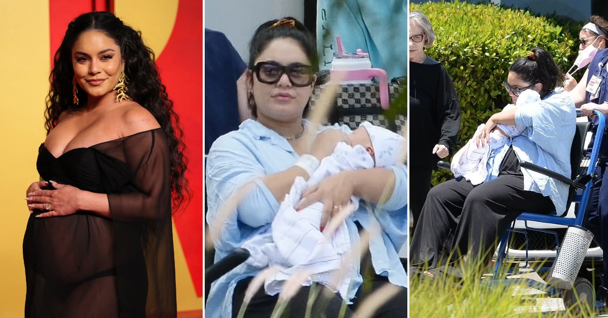 На фотографиите, медицинска сестра ја турка Ванеса во количка од болницата до автомобилот додека таа го држи во раце новороденото бебенце. Покрај нив оди нејзиниот сопруг Кол Такер.