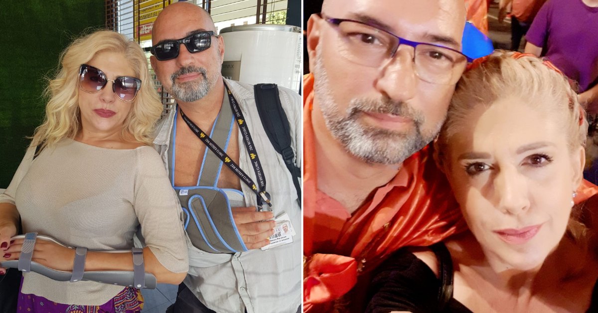На објавената фотографија, се гледа како познатата активистка и поранешна пејачка има повредена лева рака во лонгета, а Милан е со повредена десна рака, па токму тој духовито напиша: