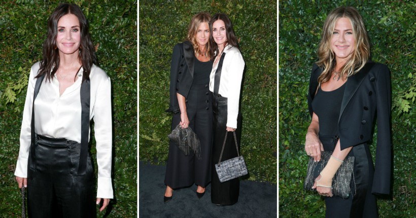 49-годишната Анистон беше облечена во модерен црн костум од Шанел и носеше чантичка од истата модна куќа, додека 53-годишната Кокс се појави во комбинација со црни панталони, бела кошула и сива чанта од Шанел.
