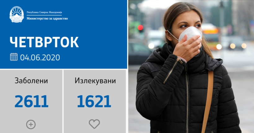 Вкупната бројка на дијагностицирани со КОВИД-19 во нашата земја од почетокот на епидемијата изнесува 2.611, бројката на оздравени пациенти е 1.621, на починати е 147, а во моментов, бројот на активни случаи во земјата изнесува 843.
