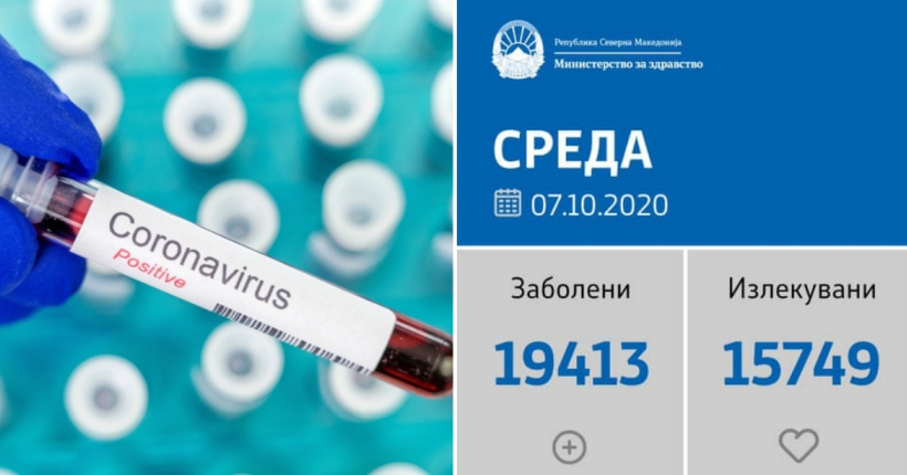 Вкупната бројка на ковид дијагностицирани во нашата земја од почетокот на епидемијата изнесува 19.413, бројката на оздравени пациенти е 15.749, на починати е 772, а во моментов бројот на активни случаи во земјата изнесува 2.892.