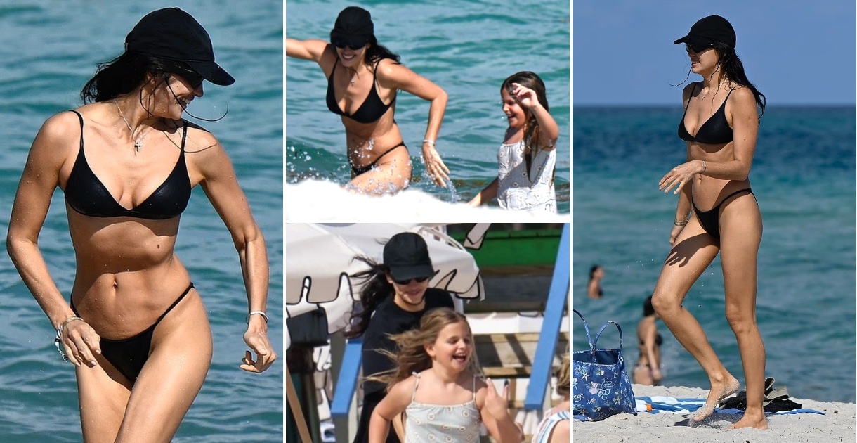 40-годишната манекенка за Свети Валентин беше фотографирана на плажа додека се забавуваше, смееше и уживаше во друштво на 8-годишната ќерка.