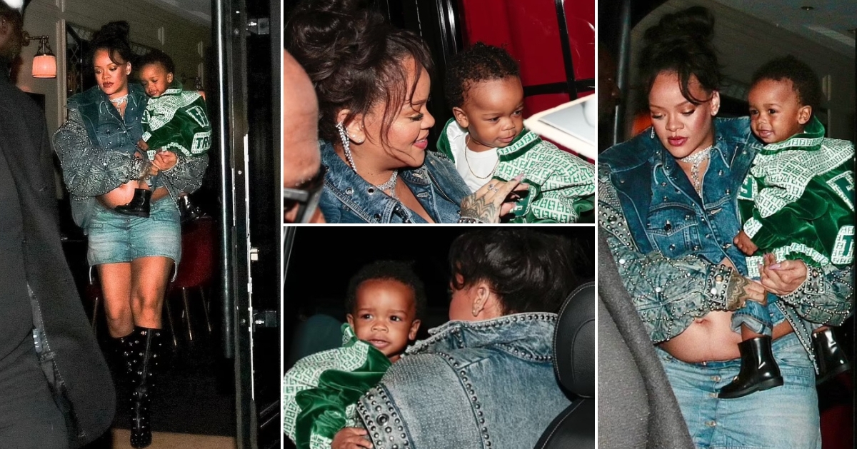 35-годишната пејачка, која го очекува второто дете со партнерот Ејсап Роки, беше фотографирана додека го носеше во раце 11-месечното синче. За вечерното излегување во ресторанот „Cesar“ во Париз, славната музичарка беше облечена во тексас модна комбинација која ѝ го разголи пораснатото стомаче.