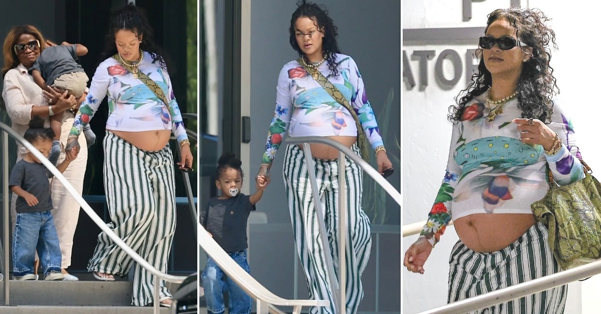 Ријана го разголи трудничкото стомаче во последниот триместар на прошетка со малите синчиња и мајка си