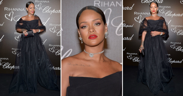Ријана во црна креација и блескав накит на вечерата на Шопард во Кан организирана во нејзина чест