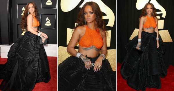 На доделувањето на Греми наградите, 28-годишната музичарка од Барбадос се појави во дводелна креација од високата мода на Армани. Портокаловиот горен дел ја отскриваше нејзината голема тетоважа од божицата Изида, која музичката ѕвезда си ја истетовира во спомен на нејзината покојна баба.