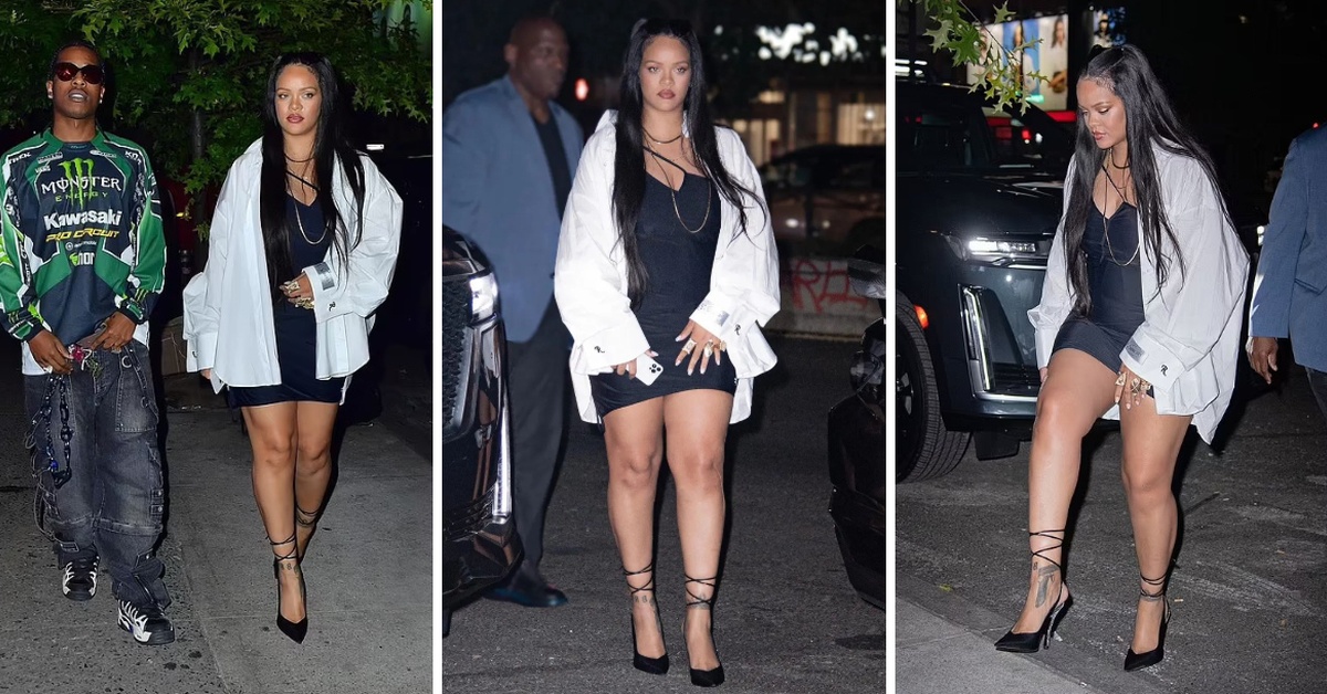 34-годишната пејачка, која се породи пред три месеци, носеше припиен мини фустан и широка бела кошула.
