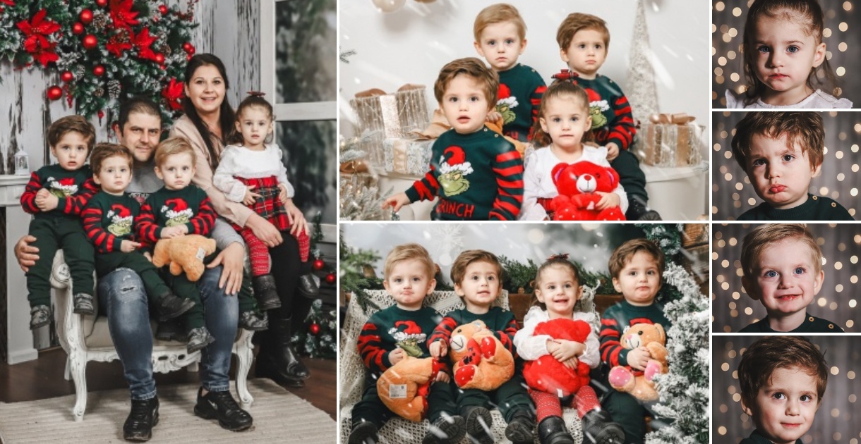 Родителите на четворката од Штип во новогодишна фотосесија со малечките: „Рацете ни се полни, срцето уште повеќе“