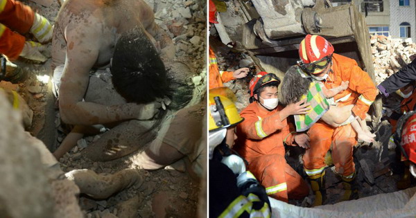 Тригодишно девојче беше извлечено ЖИВО, благодарение на последните прегратки од своите родители, откако мина 12 часа под урнатините на зграда во кинескиот град Венџоу.