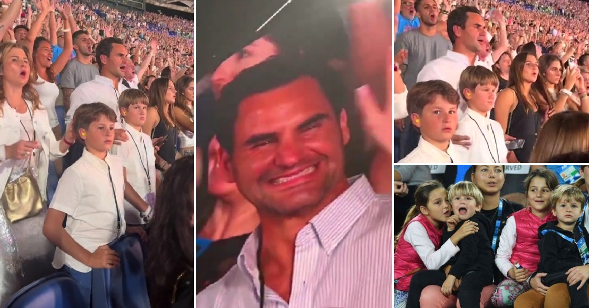 42-годишниот тенисер танцуваше и пееше со близнаците и близначките кои ги има со поранешната професионална тенисерка. Во еден момент, Роџер беше прикажан на големиот екран на концертот на големо задоволство на фронтменот на групата, Крис Мартин, кој е и негов добар пријател.