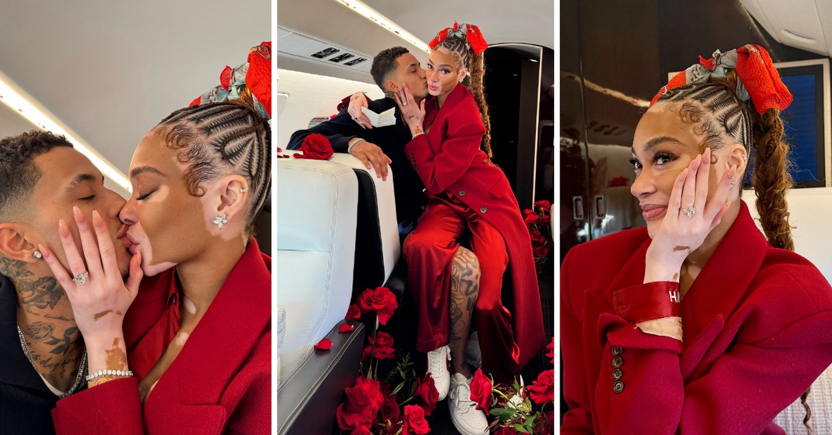 30-годишниот модел со витилиго доби романтичен предлог за брак од 29-годишниот НБА играч. Тој ја изненади во авионот додека се упатуваа на одмор на Туркс и Кајкос.