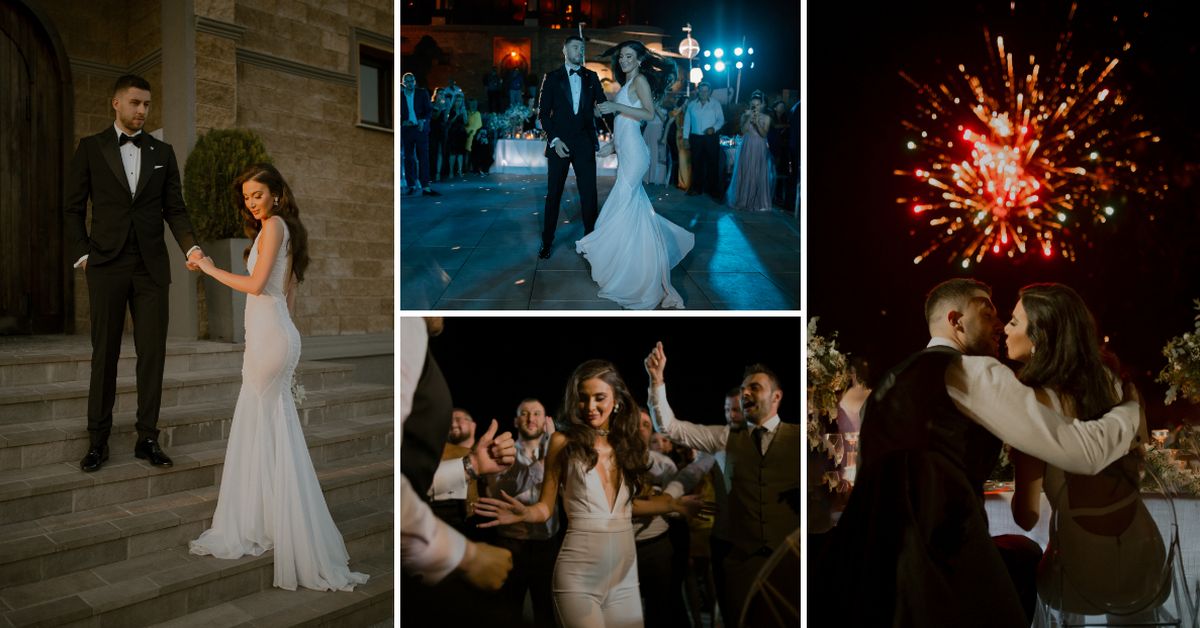 Отмената свадба се одржа во винарија Камник, а парот изгледаше повљубено отсекогаш. Среќната невеста носеше припиена венчаница со силуета „сирена“ и деликатни набори додека шармантниот младоженец беше облечен во црно одело.
