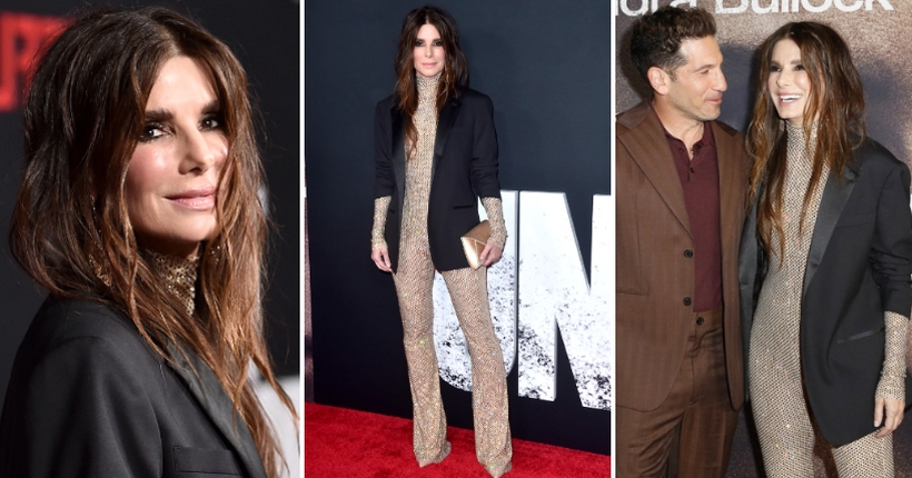 На премиерата која се одржа во Лос Анџелес, 57-годишната актерка се појави во блескав комбинезон со долги ракави од Стела Мекартни и црно смокинг сако.