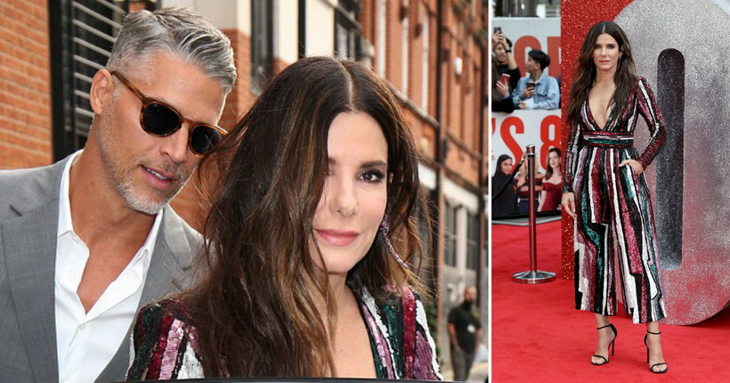 Сандра Булок во комбинезон од Зухаир Мурад со згодниот љубовен партнер на премиера на „Ocean’s 8“