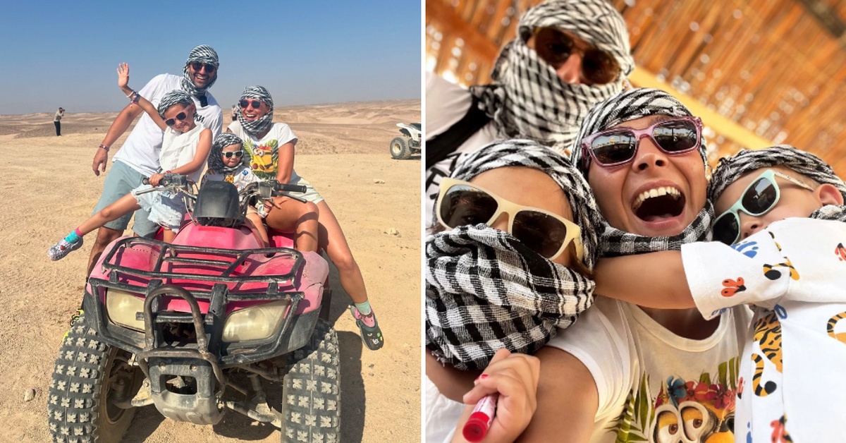 Македонската пејачка и харфистка и популарниот водител со малите Илина и Кирил се возеа со четирицикли низ пустина во Хургада.