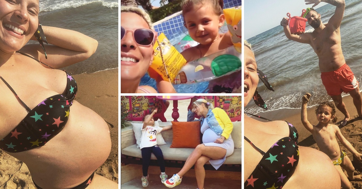 Славната пејачка и харфистка, која е во осмиот месец од втората бременост, сподели неколку фотографии од семејниот одмор на Instagram.