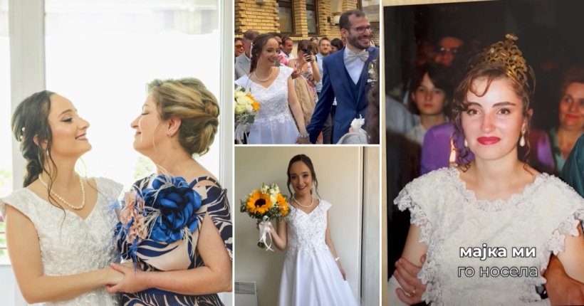 Сара Коцевска за најубавиот ден од својот живот реши да не купува нов, скап невестински фустан, туку да му подари втор живот на оној што пред три децении го носела нејзината мајка на свадбата со татко ѝ.