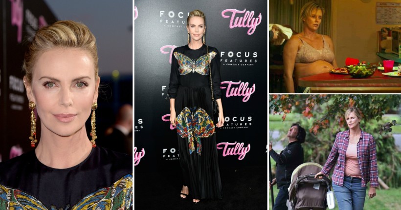 Шарлиз Терон во фустан од Диор на премиера на „Tully“ откако зборуваше за здебелувањето за филмот