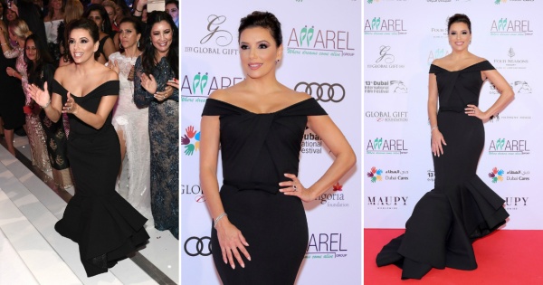 За свечениот настан, Ева избра црна креација која ги истакнуваше нејзините облини. Фустанот е дело на модната дизајнерка Зена Заки.