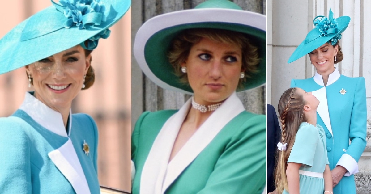 Пред 37 години, принцезата Дијана мамеше погледи со сличен изглед на балконот од Бакингемската палата. На фотографиите од 1988 година и таа носи складна облека со своето дете, принцот Хари.