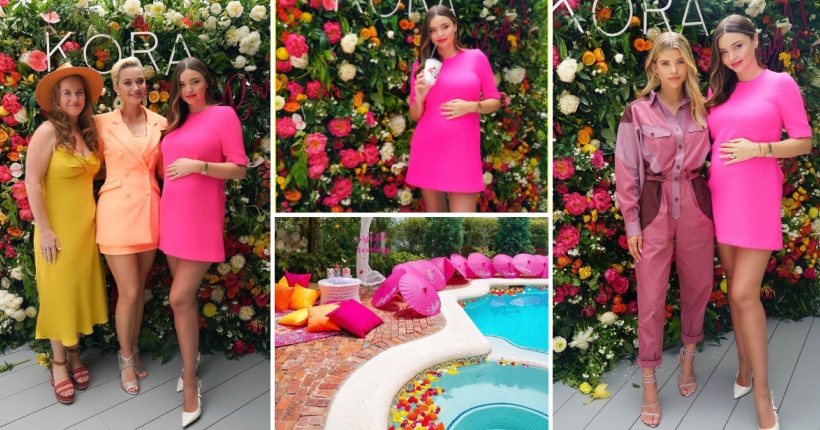 Шармантна трудница: Миранда Кер во розово на забава покрај базен во нејзиниот дом во Малибу