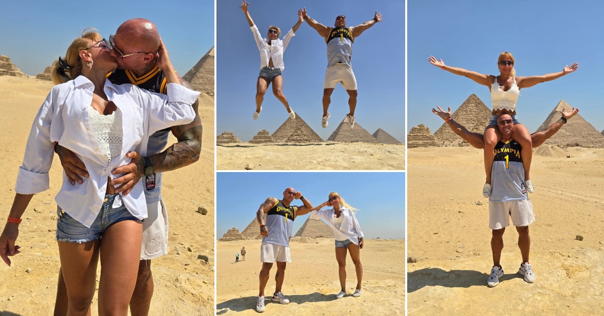 Македонските бодибилдери беа на авантура во Египет и изгледаа заљубено и среќно. Брачниот пар на Facebook сподели забавни фотографии на кои позира пред пирамидите.