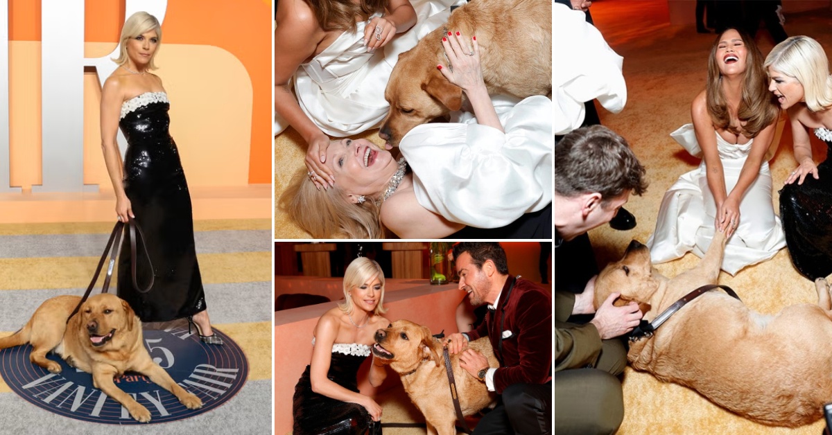 Се дружеше и галеше со славните: Службеното куче на Селма Блер го украде целото внимание на забава по Оскар