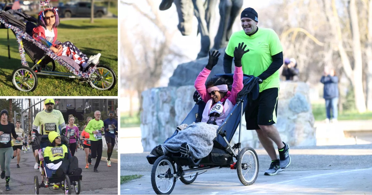 Родителите прават сè за своите деца. Татко од Калифорнија трча полумаратони туркајќи ја својата ќерка во инвалидска количка.
