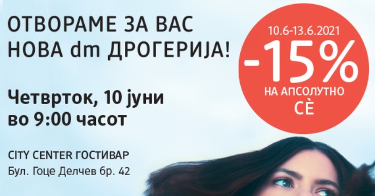 Во четврток, 10 јуни, во 9 часот наутро ќе се отворат вратите на првата dm дрогеријата во City Center Гостивар, на бул. Гоце Делчев бр. 42.