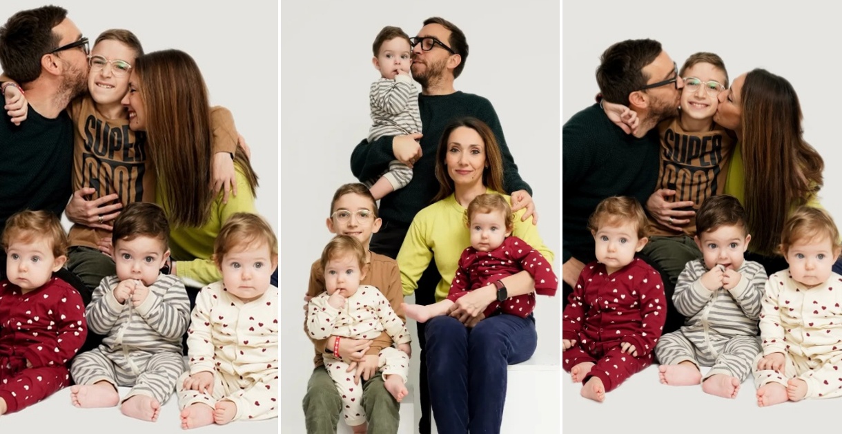 Македонскиот саксофонист сними семејна фотосесија со сопругата Наташа, постариот син Дамјан и трите најмали члена Луна, Лена и Лазар. Тројката се роди предвреме во декември 2024 година.