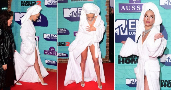 Рита Ора изненади милиони гледачи на MTV EMA 2017. На црвениот тепих во Лондон, славната пејачка зачекори во мошне необичен „стајлинг“.
