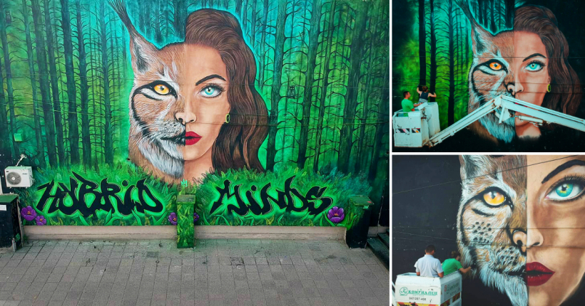 „Lady Lynx“ е најголемиот мурал на момците од групата Hybrid Minds Crew, која постои веќе 2 години и стои зад многу графити и мурали во Градот на конзулите.