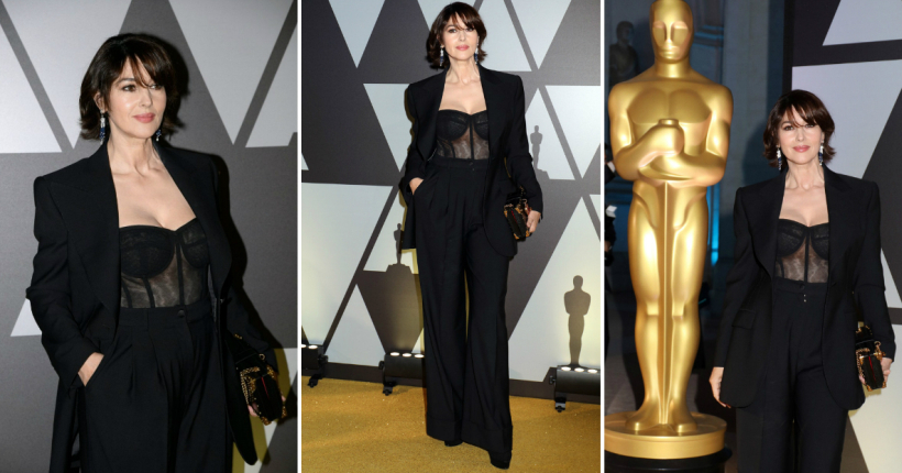 На филмскиот настан организиран од Американската академија на филмски уметности во Рим, 55-годишната актерка заведуваше облечена во црн костум и делумно проѕирен корсет.