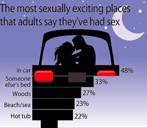 Во истражување на компанијата за производство на презервативи Trojan, скоро половината од луѓето (48%) за највозбудлив го прогласиле сексот во автомобил.