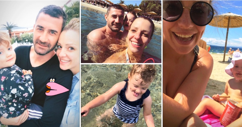 На Instagram, 33-годишната музичка ѕвезда сподели фотографии од времето поминато на плажа со малата ќеркичка Хана и сопругот Александар Димитровски.
