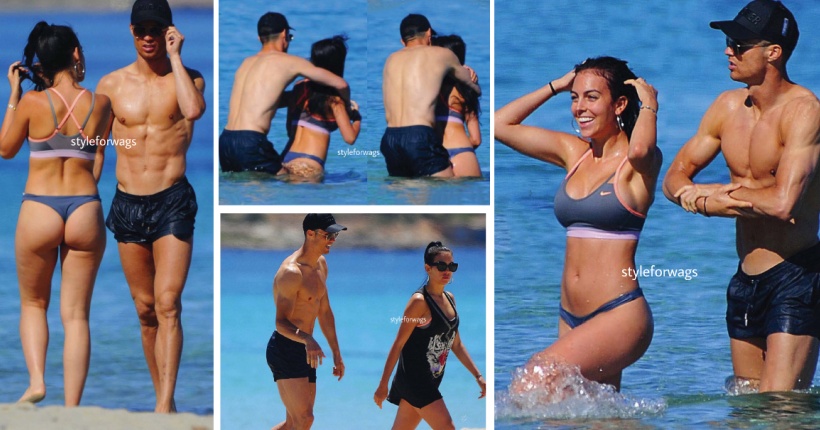 33-годишниот фудбалер беше фотографиран од папараците додека ја прегрнуваше својата девојка и заедно со синот Кристијано Џуниор се разладуваа во бистрите води.