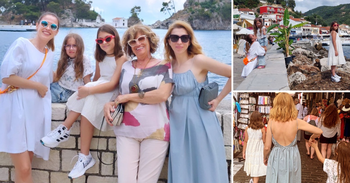 42-годишната македонска ѕвезда деновиве уживаше на патување во Грција заедно со мајка си Светлана, сестра си Александра и преслатките внуки Луција и Инес.