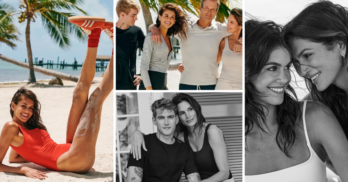 59-годишниот модел се здружи со сопругот Ренди Гербер, ќерката Каја и синот Пресли за рекламна фотосесија за брендот Vuori.