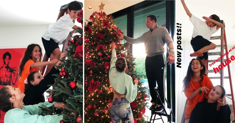 Празнична атмосфера завладеа во домот на Џенифер Лопез и Алекс Родригез. Популарниот пар ја китеше големата новогодишна елка со четирите деца и сподели фотографии и видео од семејното дружење.