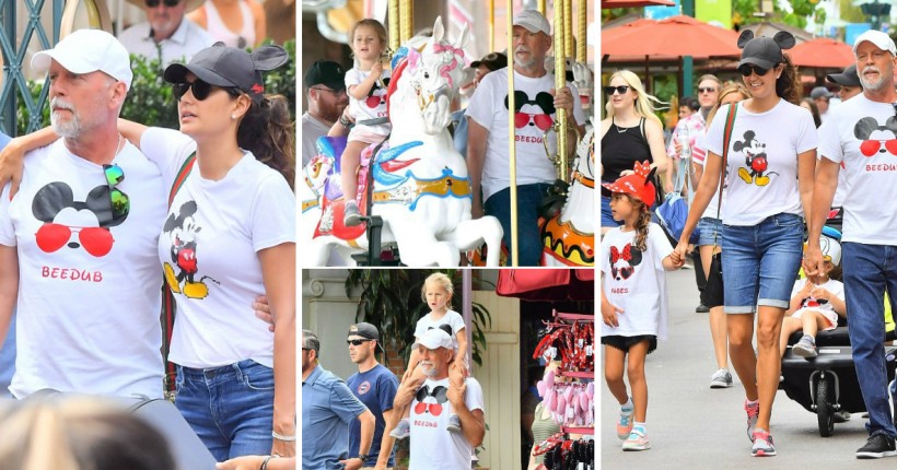 Брус и Ема забавниот парк го посетија со нивните две ќерки (6-годишната Мејбел и 4-годишната Евелин), како и со трите негови ќерки од бракот со Деми Мур (Румер, Скаут и Талула).