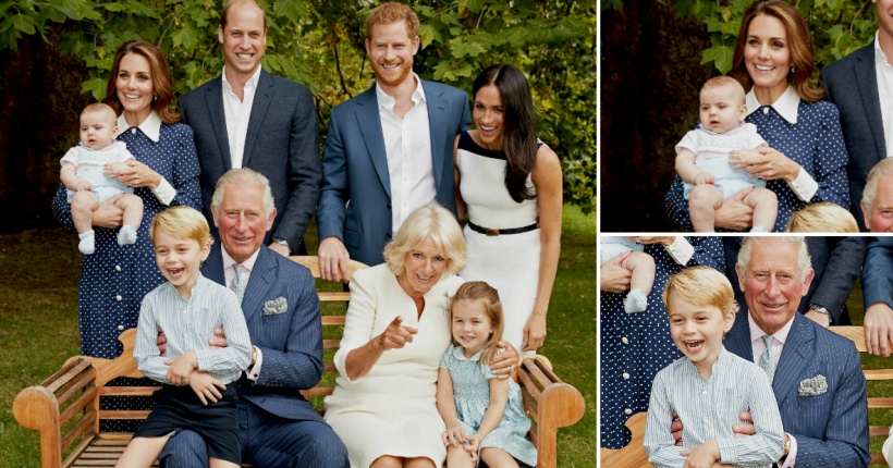 5-годишниот принц Џорџ седи во скутот кај дедо си Чарлс, слатката принцеза Шарлот седи покрај војвотката Камила, додека најмалиот член на кралското семејство, принцот Луи, е во рацете на мајка си Кетрин.