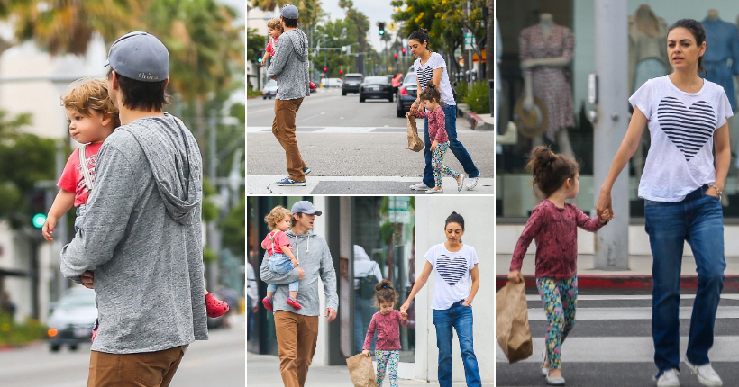 34-годишната актерка и 40-годишниот актер беа фотографирани за време на семејна дружба во Беверли Хилс, Калифорнија. На фотографиите, Мила ја држи за рака тригодишната ќерка Вајат, додека Ештон го носи во раце едногодишниот син Димитри.